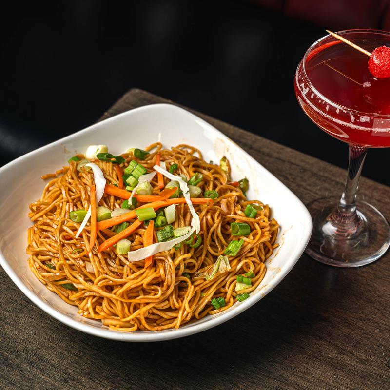 Wok-tossed vegetable noodles in a bold Szechuan chilli-garlic sauce.