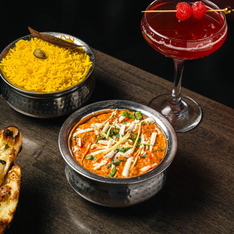 Marinated in aromatic herbs and spices, then cooked in a rich, creamy butter sauce.