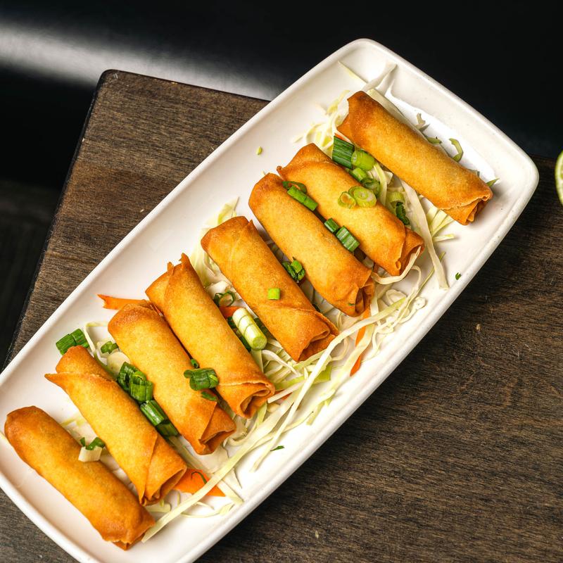 Crispy spring rolls filled with seasoned mixed vegetables.