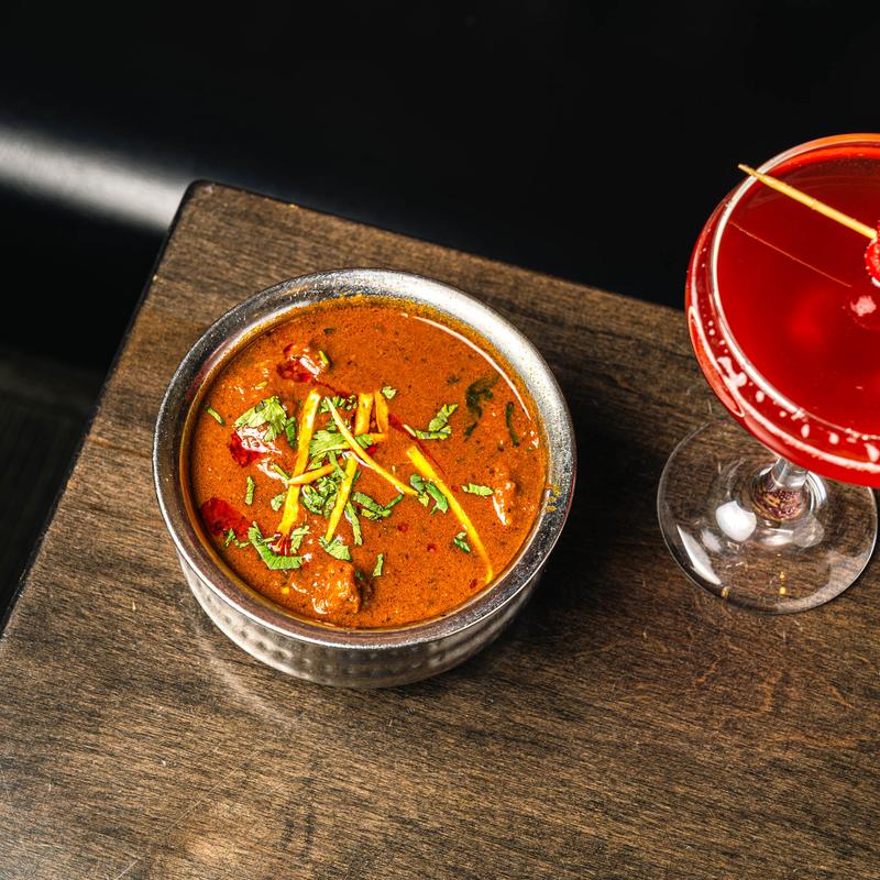 Authentic Indian style Butter Chicken made with cashew gravy with marinated & tandoori grilled chicken thigh meat (contains cashew nuts).